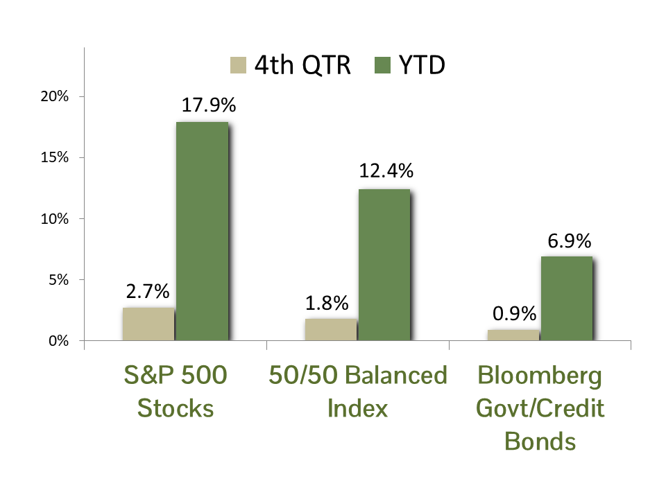 MARKET SUMMARY: Investors enjoyed a resilient “everything rally” for both the stock and bond markets in 2025. The markets defied fears of a trade war, persistent inflation, a cooling labor market, a record 43-day government shutdown and a potential bubble in artificial intelligence stocks.